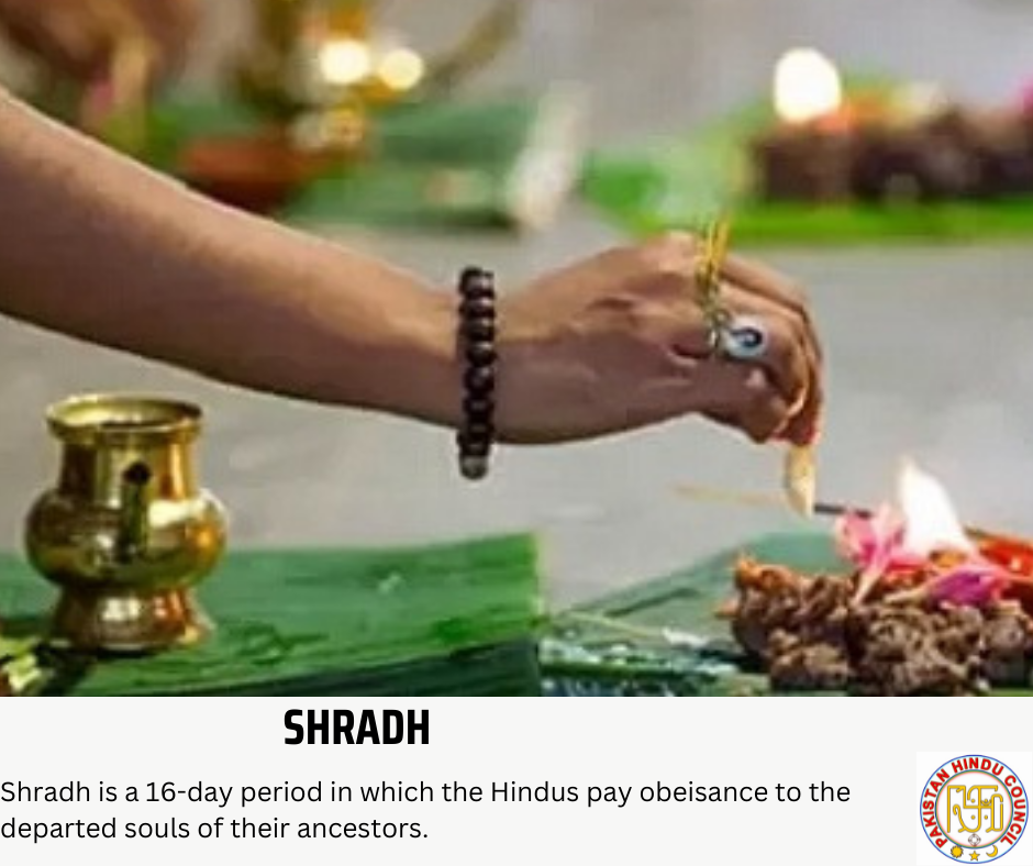 Pitru Paksha or Shradh is a 16-day period in which the Hindus pay homage to their ancestors During this period, the Hindus pay obeisance and offer food to the departed souls of their ancestors. This time period. which begins with the first full moon after Ganesh Chaturthi and ends on the new moon. Shradh can be done for the peace of the ancestors, but the importance of doing Shradha in the Pitru paksha is considered to be of great importance. The shradh is performed on the specific lunar day during the Pitru Paksha when the ancestor—usually a parent or paternal grandparent—died. There are exceptions to the lunar day rule; special days are allotted for people who died in a particular manner or had a certain status in life.